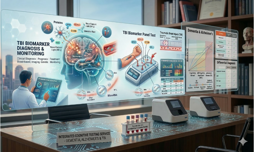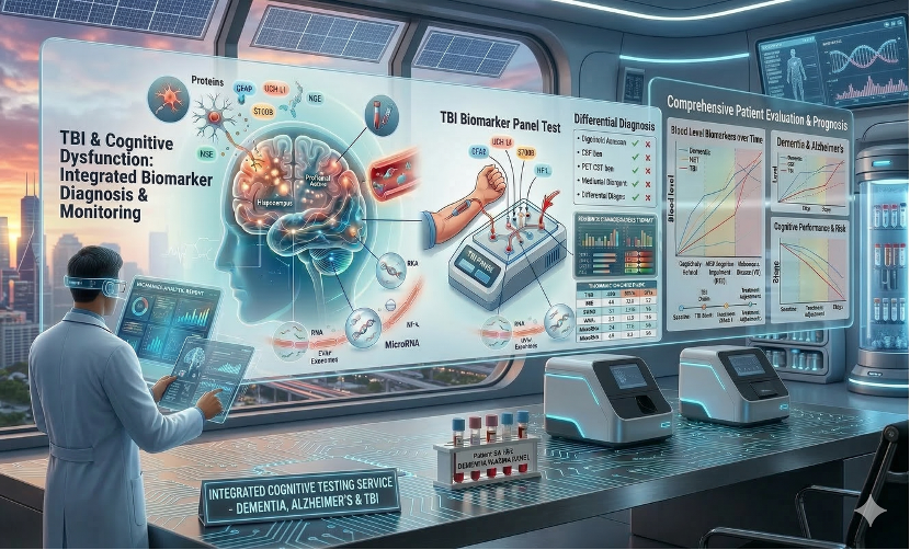 Detects early biochemical evidence of brain injury within hours after trauma.
